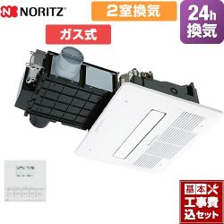 【工事費込セット(商品+基本工事)】 【ガス式】 ノーリツ 浴室暖房乾燥機 浴室換気乾燥暖房器 天井カセット形(ミストなし) 2室換気用 リモコン付属 ≪BDV-4106AUKNC-J2-BL≫